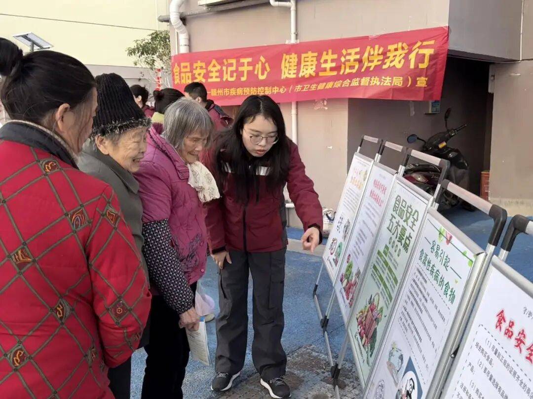 新春佳节临近,年货采购、家庭会餐进入高峰期,为切实保障泛博居平易近饮食平安,建牢节日食物平安防地日,赣州市疾控核心(市卫监局)结合章贡区赞贤社区工做人员,走进909小区开展“春节前食物平安学问进社区”宣传勾当,将健康饮食送到群众口。