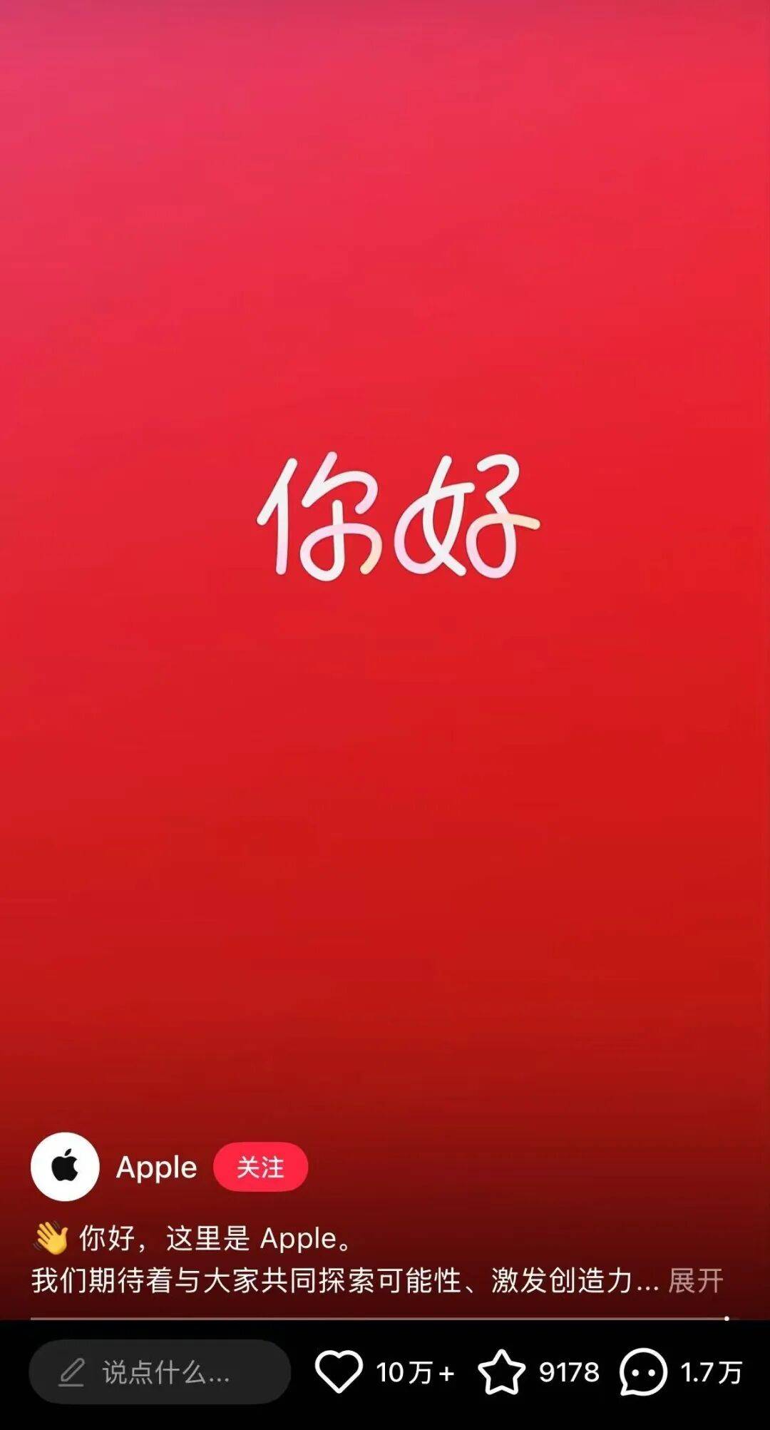 正在今天的下,即便是全球顶尖的品牌,也无法仅靠产物力“躺赢”。它必需走坛,学会以用户熟悉的言语和体例进行对话。发布会的大声量,是苹果品牌势能的天然成果,更是其自动顺应、积极运营的必然收成。正在发布会前一个月,一贯“高冷”的苹果正在小红书开通账号,第一条视频配文“你好,这里是Apple,正在此和大师分享科技、创意取将来。”单条内容获10万+点赞,评论区有上万用户参取互动。