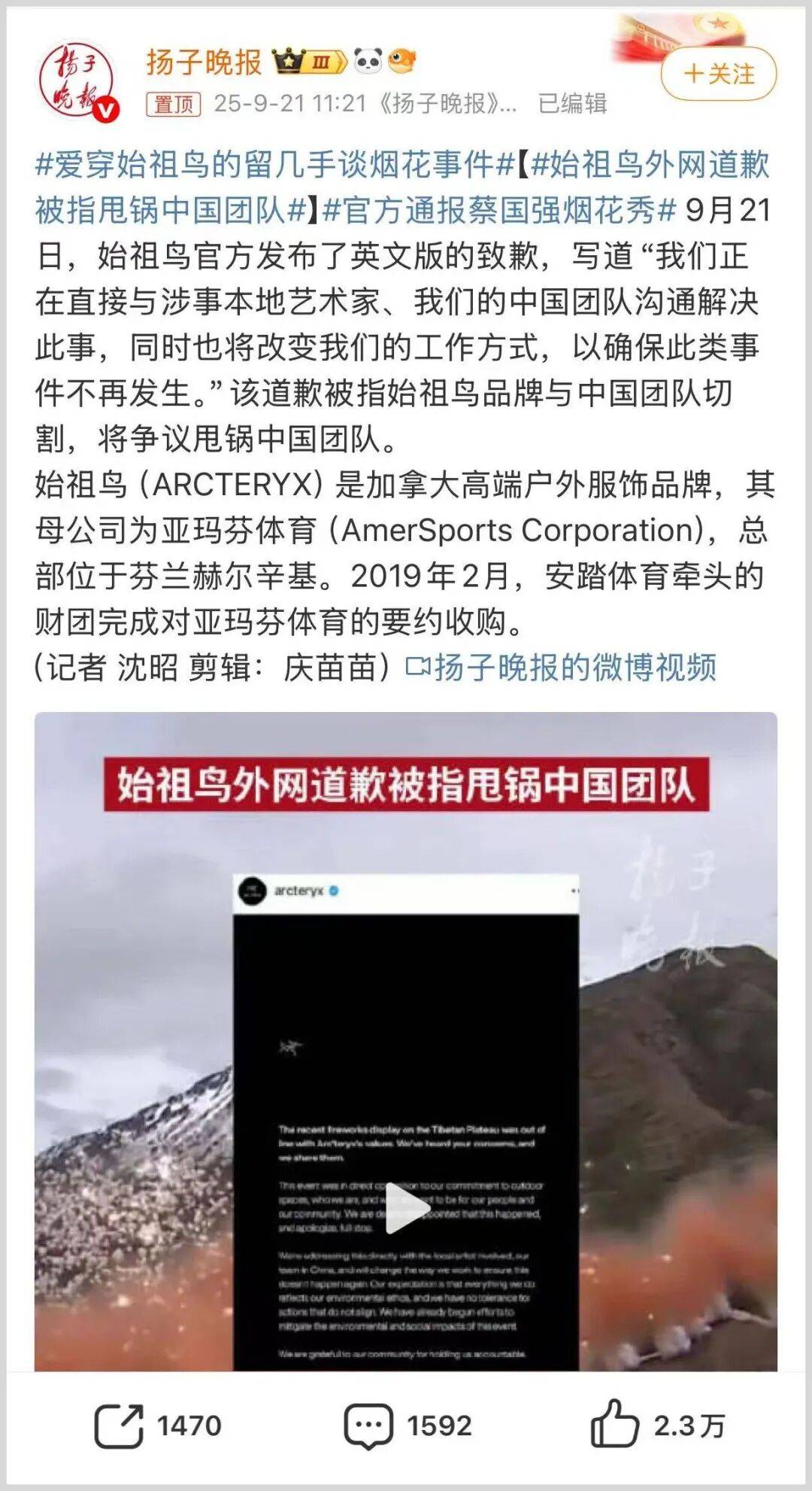 鼻祖鸟呈现的第一个失误,是应对风浪的畅后性。正在危机公关的黄金窗口期,鼻祖鸟和蔡国强火速删除相关视频和推广素材,品牌方没有取及时沟通,而是选择连结缄默。正在这一步,阵地曾经失守。鼻祖鸟的第二个失误,是沟通体例不合适公共预期。三天后鼻祖鸟颁发道歉,却被网友发觉其海外道歉声明称,“我们正正在间接取涉事的本地艺术家、我们正在中国的团队进行沟通,而且会改变我们的工做体例,以确保此类事务不再发生”,被网友质疑“甩锅”。